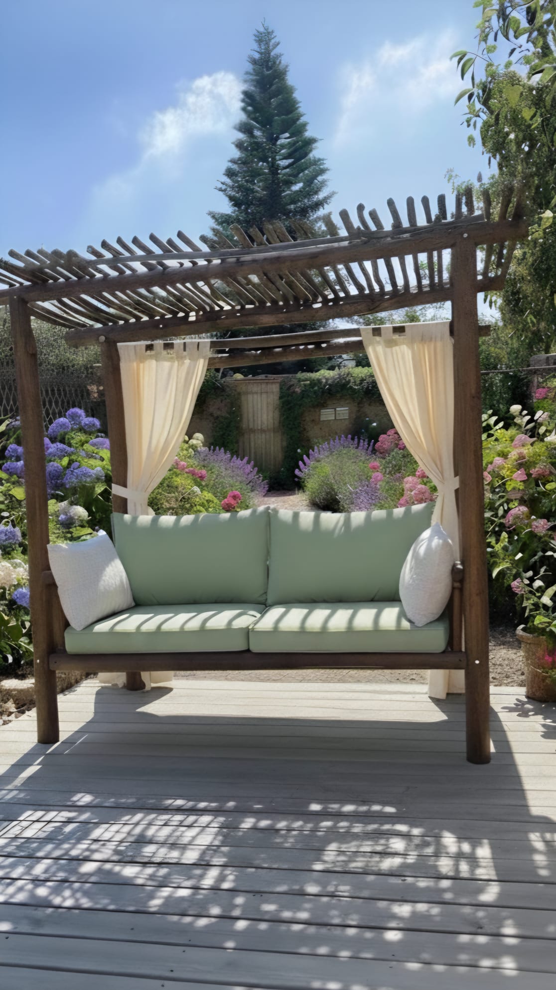 גזיבו רביצה עץ מלא טיק מידה 220*100*200 מחיר מבצע: 5,400 ש"ח כולל ריפוד איכותי