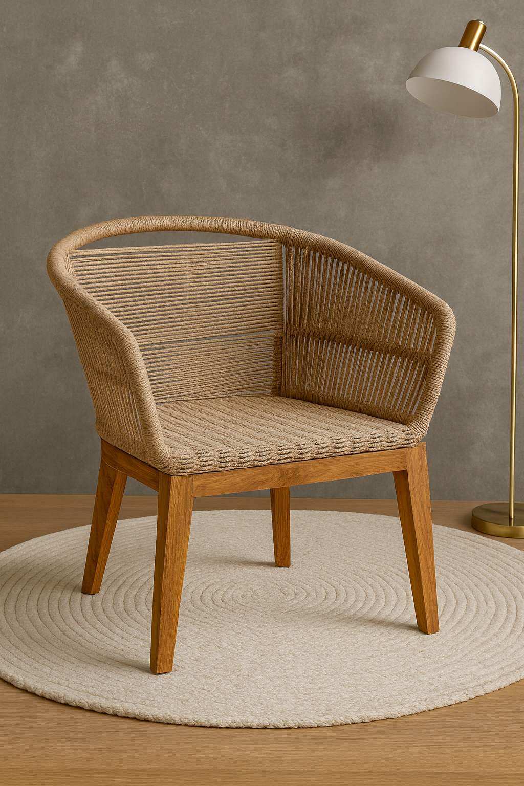 כורסא עץ טיק בשילוב חבל מידה 75*80*90 במחיר מבצע: 1,790 ש"ח