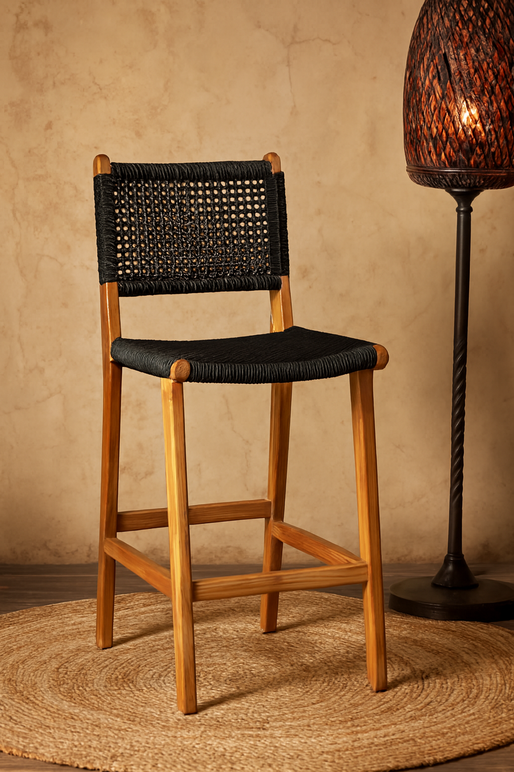כיסא בר טיק בשילוב ראטן מידה 10*45*47 במחיר מבצע: 1,290 ש"ח