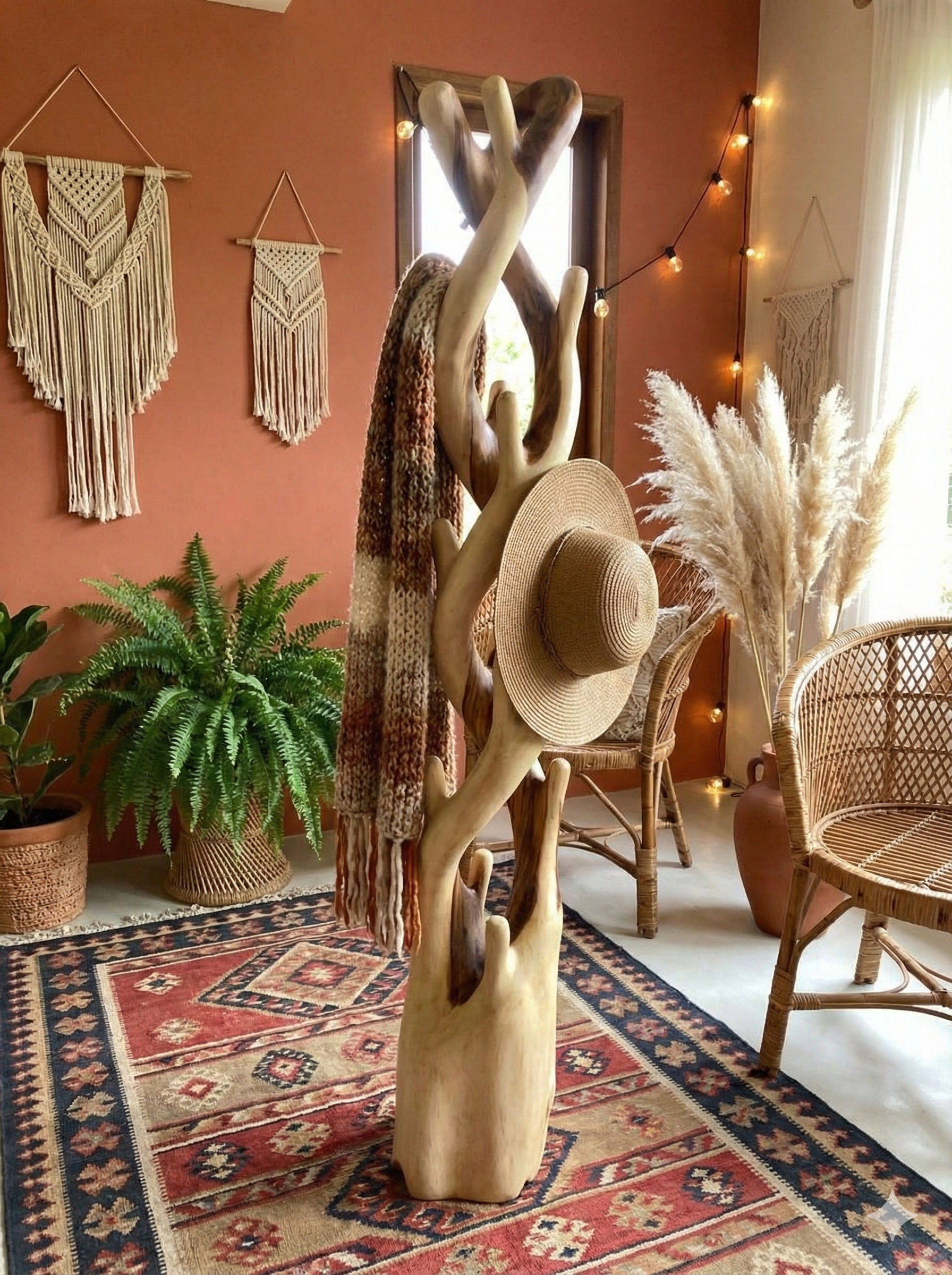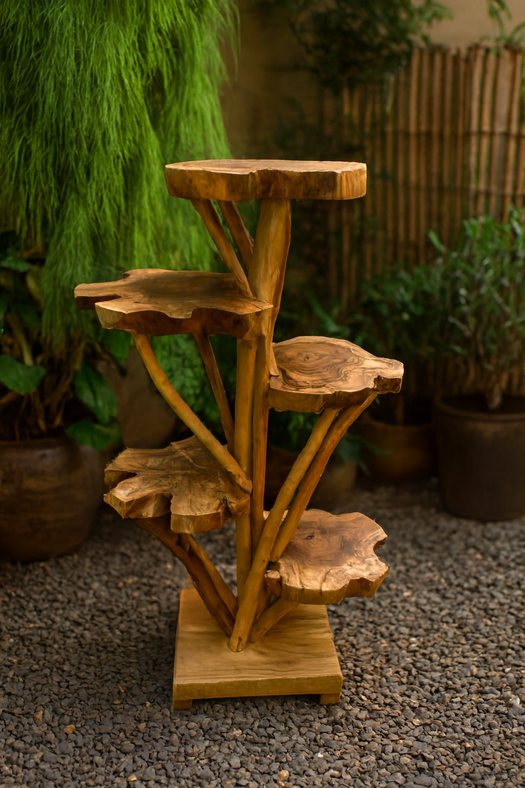 אשכול פיטריות עץ מלא טיק גובה 130 ס"מ במחיר מבצע: 1,290 ש"ח