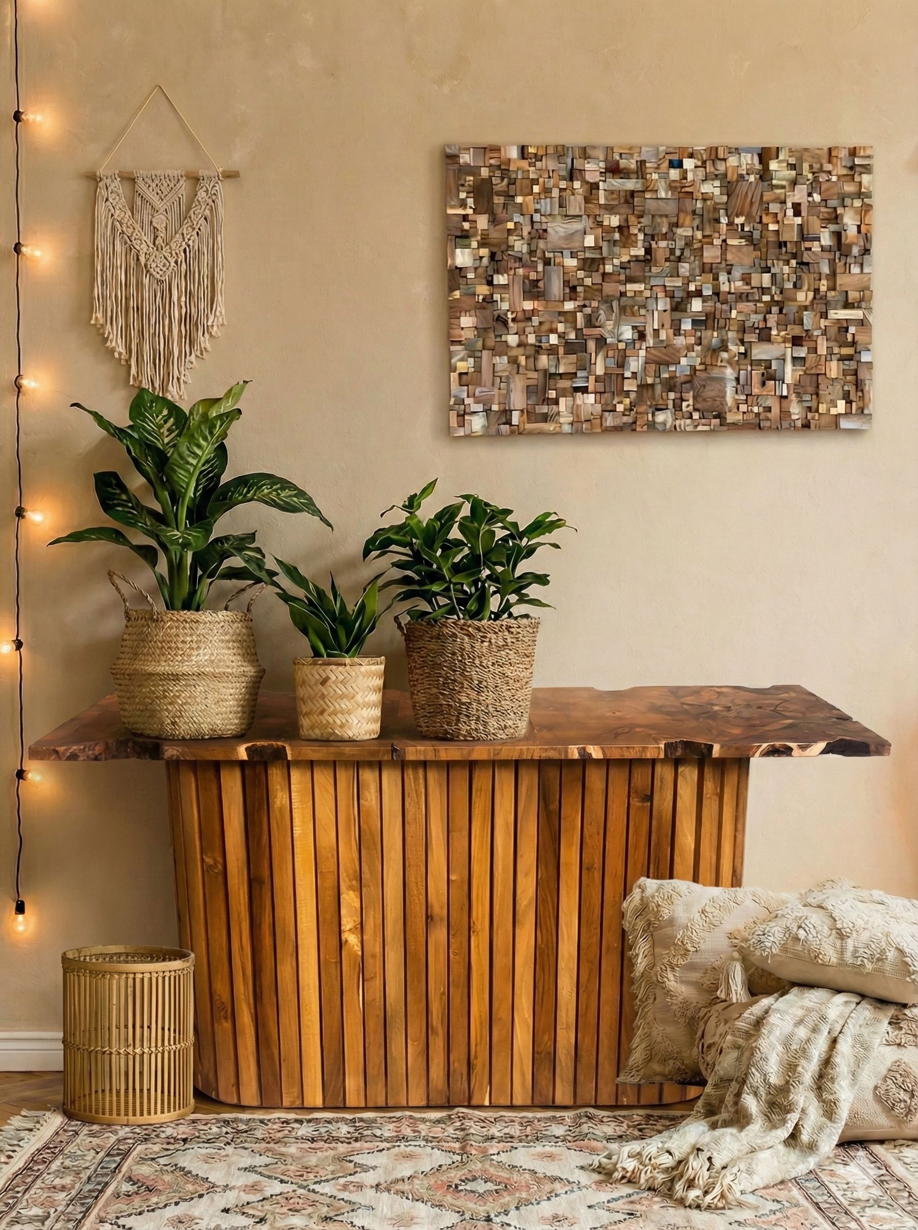 מידה 35*45*75 שורש טיק מלא גימור לכה